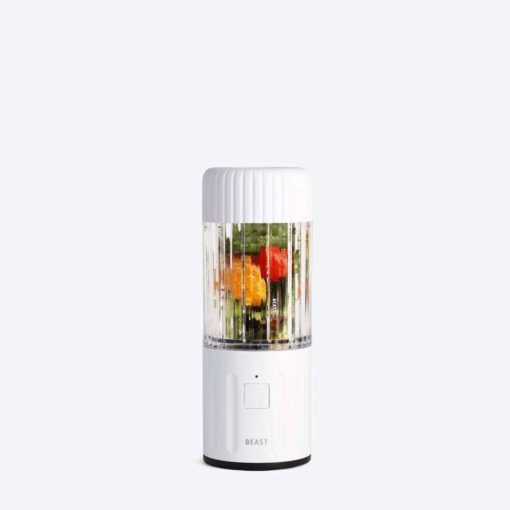The Beast GO has a travel lock feature to prevent it from turning on in transit. To turn the unit ON, press and hold the power switch for 2 seconds. When the indicator light is white, your Beast GO Blender is ready to use.